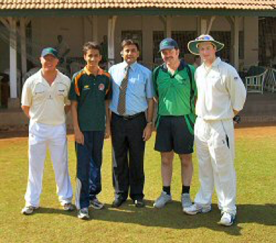 Message from Roger after the recent Grasshoppers' tour which saw him meet up with original pro, long-time Club friend and supporter, Snehal Parikh: Hi Scott Snehal sent these photos taken at Bombay Gymkhana club during the Grasshoppers tour. There is a photo of Snehal and his 16 year old son Sharan who is a very promising leftarm spinner with the 3 Carrick tourists, Andrew Cowden, Michael Turkington and myself. Maybe you could put these on the website for those interested to see. Cheers Roger